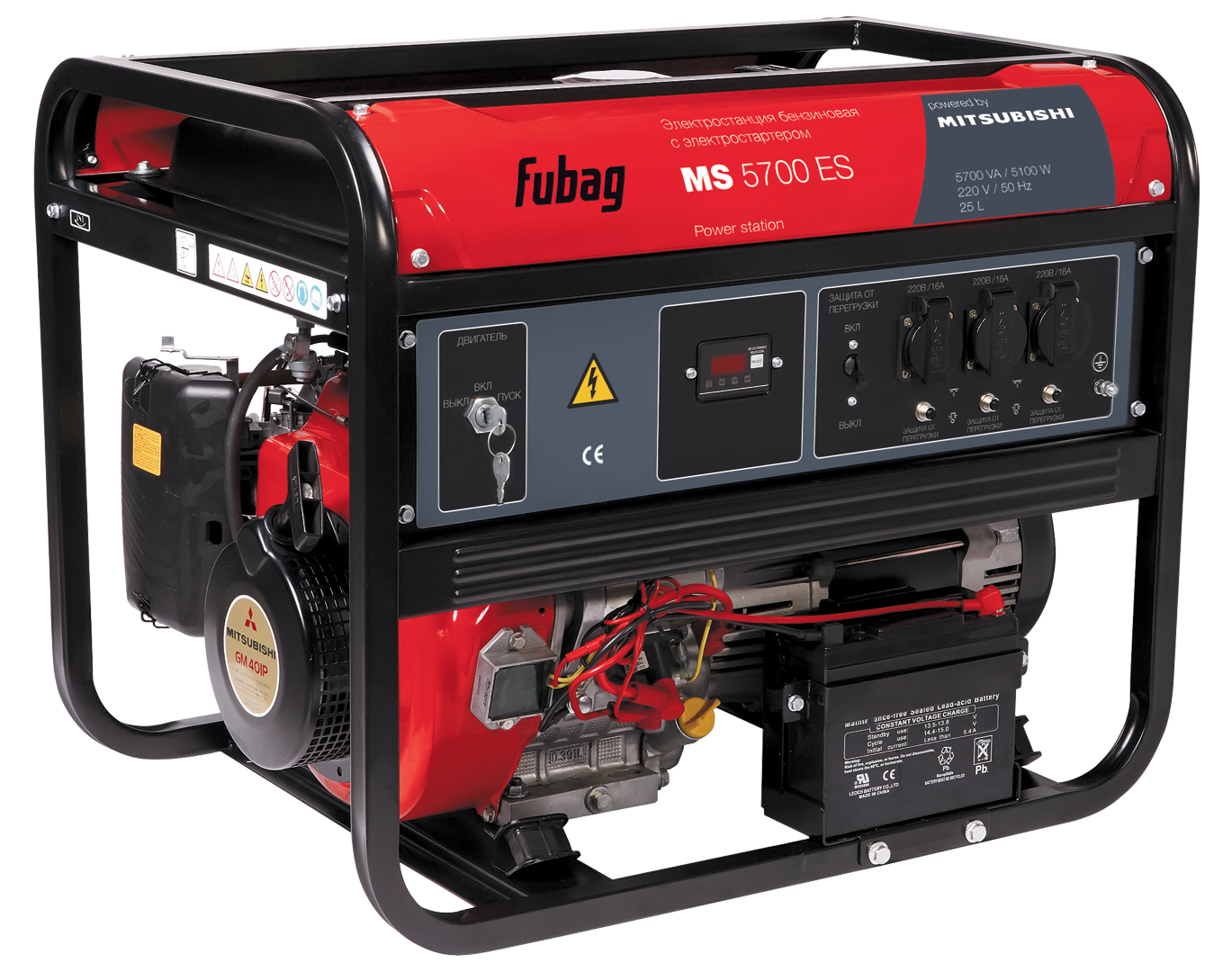 Электростанция оборудована профессиональным двигателем Mitsubishi с верхним расположением клапанов. Номинальная электрическая мощность станции - 5,1 кВт. Вместительный топливный бак и экономичный двигатель обеспечивают длительную работу электростанции без дозаправки – до 9 часов. Запаса мощности у MS 5700 ES достаточно, чтобы обеспечить питание практически любого электроинструмента, строительного оборудования или садовой техники, а высоконадёжный профессиональный двигатель позволяет работать в течение длительного времени с высокими нагрузками.