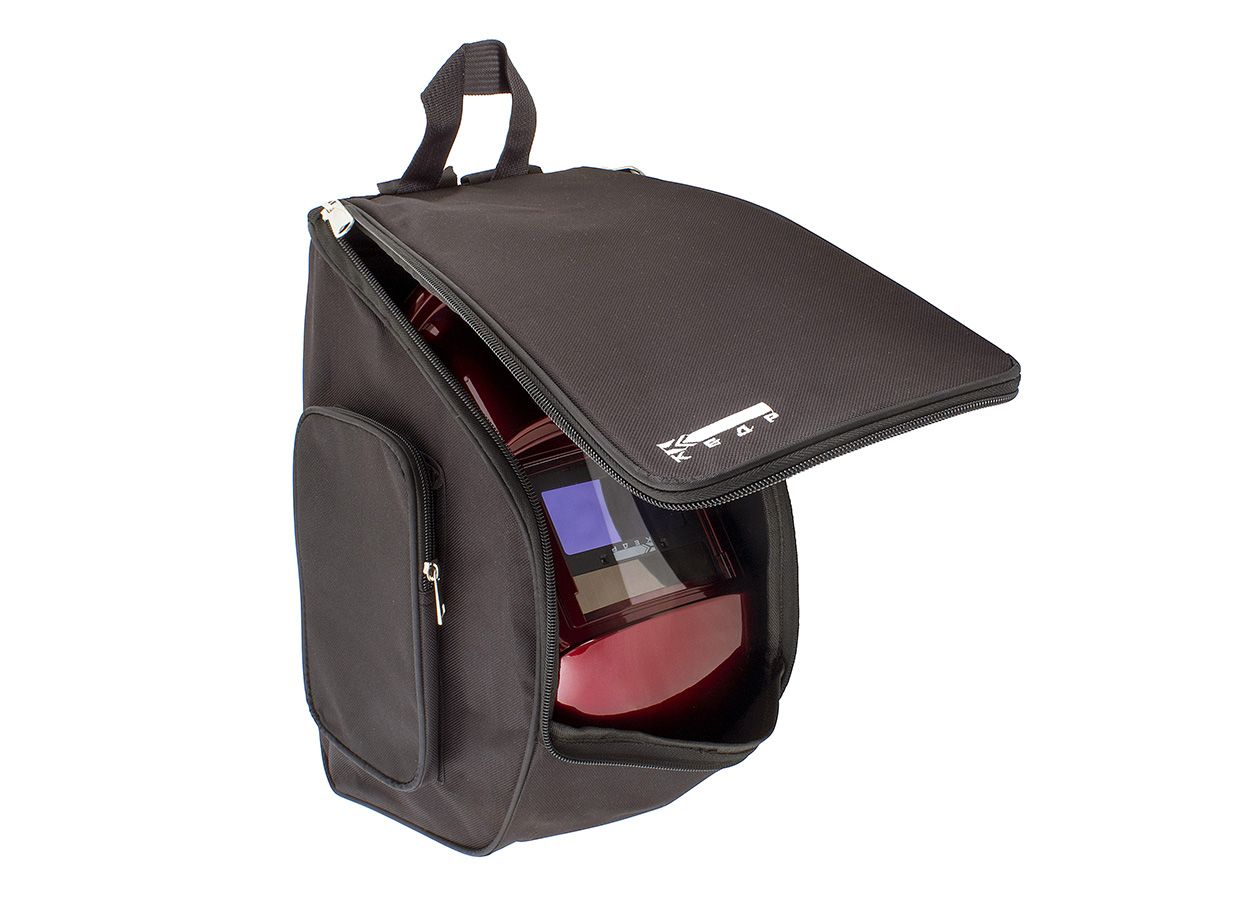 Рюкзак для маски, КЕДРпредназначен для переноски и хранения сварочных масок. Выполнен из прочного моющегося материала, что позволяет защитить маску от механических повреждений. Укрепленная задняя панель рюкзака одновременно защищает спину и снимает напряжение. Удобный клапан на молнии дает возможность быстро извлечь маску, а также сложить рюкзак до компактных размеров для хранения.