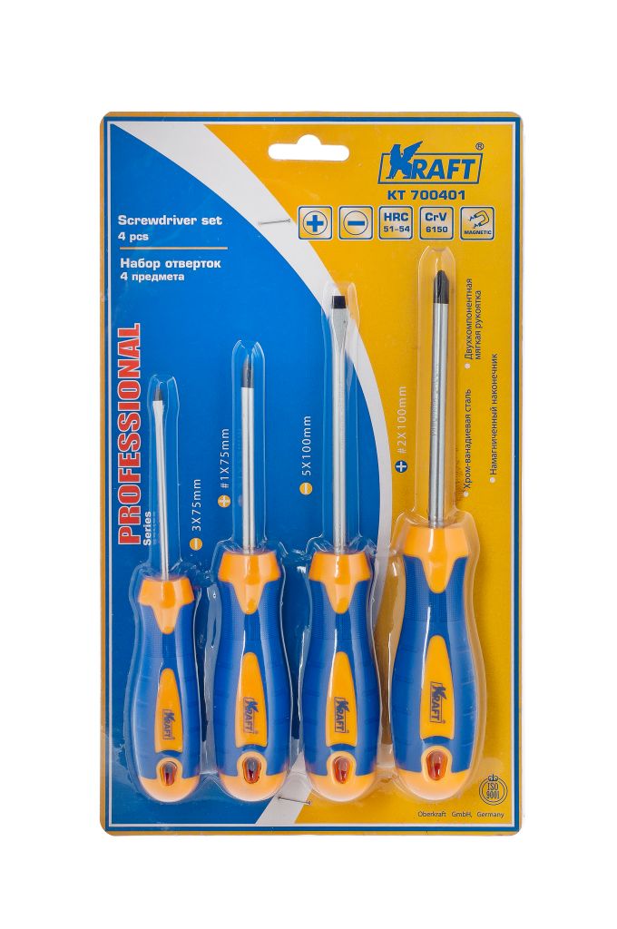 Набор отверток Kraft 4шт. (700401) в продаже по цене 0 руб. в Интернет-магазине Проф-инструмент с доставкой во Владивостоке. Звоните по телефону +8 (800) 302-10-51.