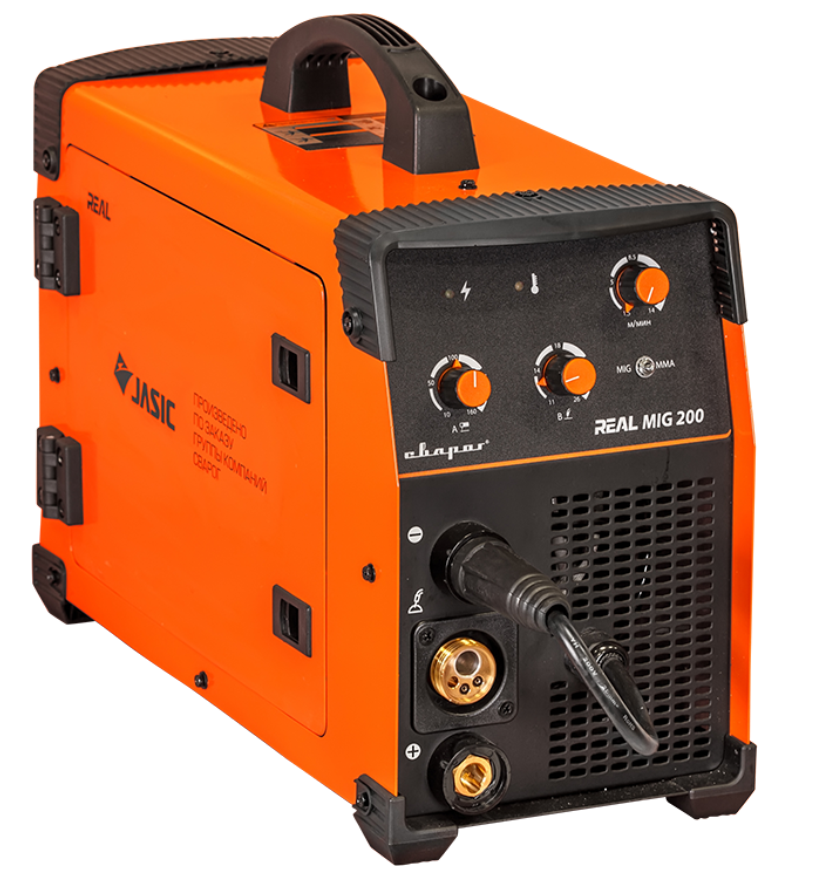 Аппарат серии REAL MIG 200 (N24002) предназначен для полуавтоматической сварки в среде защитных газов (MIG/MAG), сварки порошковой проволокой (FCAW), а также ручной дуговой сварки покрытым электродом (ММА).