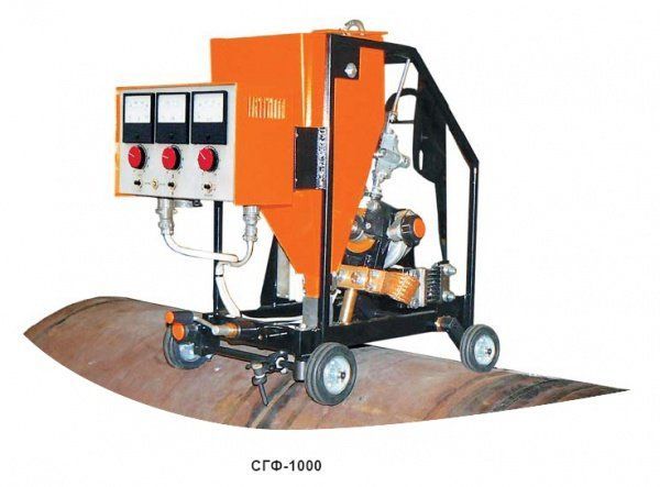 Сварочная головка СГФ-1000 в комплекте с источником сварочного тока предназначена для дуговой сварки кольцевых швов с разделкой кромок. Сварка осуществляется на постоянном токе плавящимся электродом под слоем флюса. Сварочная головка устанавливается на изделие, стоит на изделие под собственным весом с упором на штангу (штанга поставляется в комплекте).