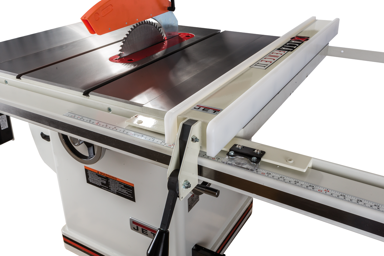 Основные особенности JTAS-12DX, кроме очень мощного мотора, заключаются в глубокой проработке всех нюансов, влияющих на удобство и точность работы. Так, по оценке профессионалов, регулировка высоты и наклона пильного модуля очень точная и плавная. Расклинивающий нож не только опускается вслед за диском, но и легко поддается точной регулировке: для этого достаточно ослабить один эксцентриковый зажим, доступ к которому открывается с верхней стороны стола. Замена диска тоже производится «сверху», причем для блокировки вала предусмотрен специальный механизм. Сама поверхность стола и расширителей (входят в комплект поставки) гладко отшлифована и имеет два Т-образных паза.