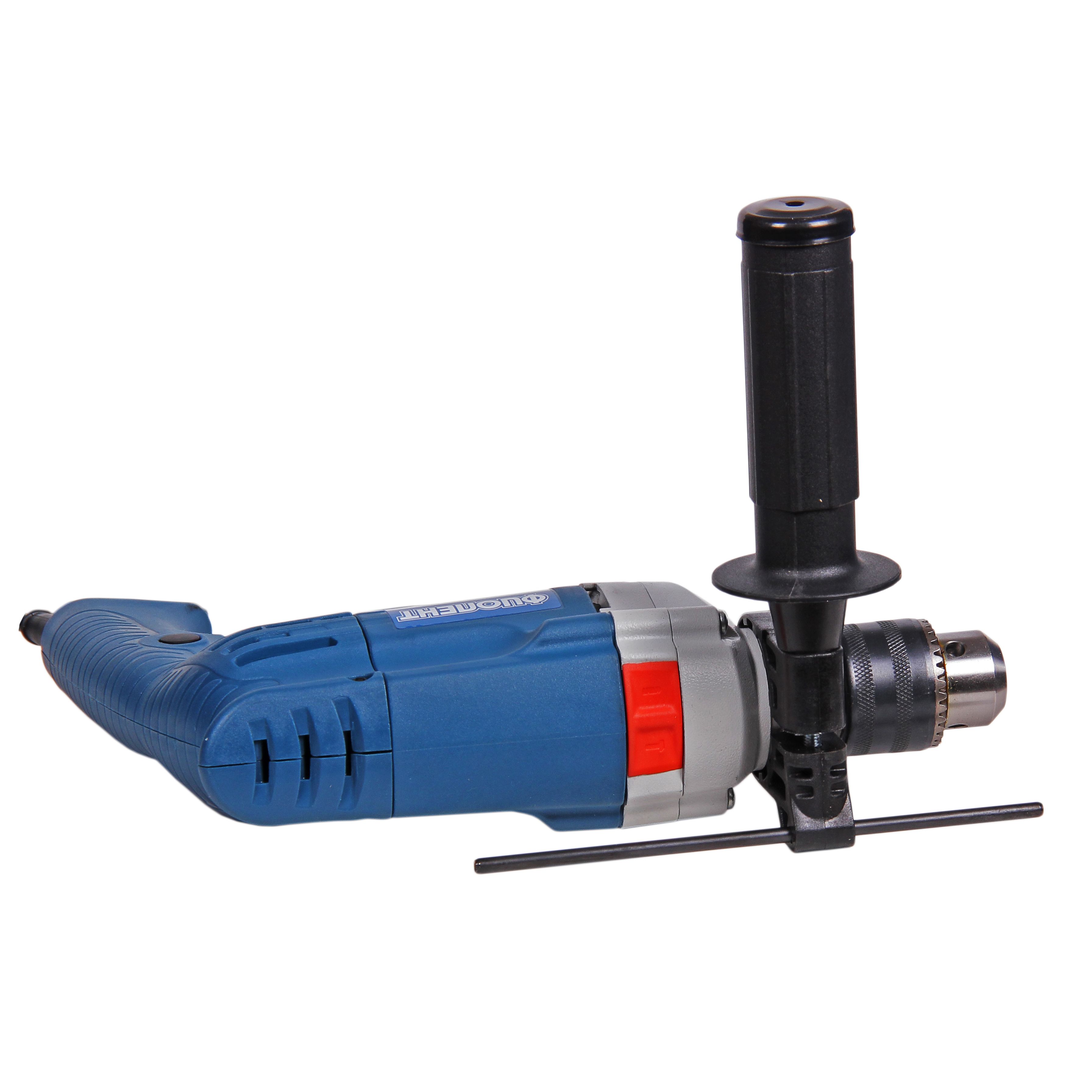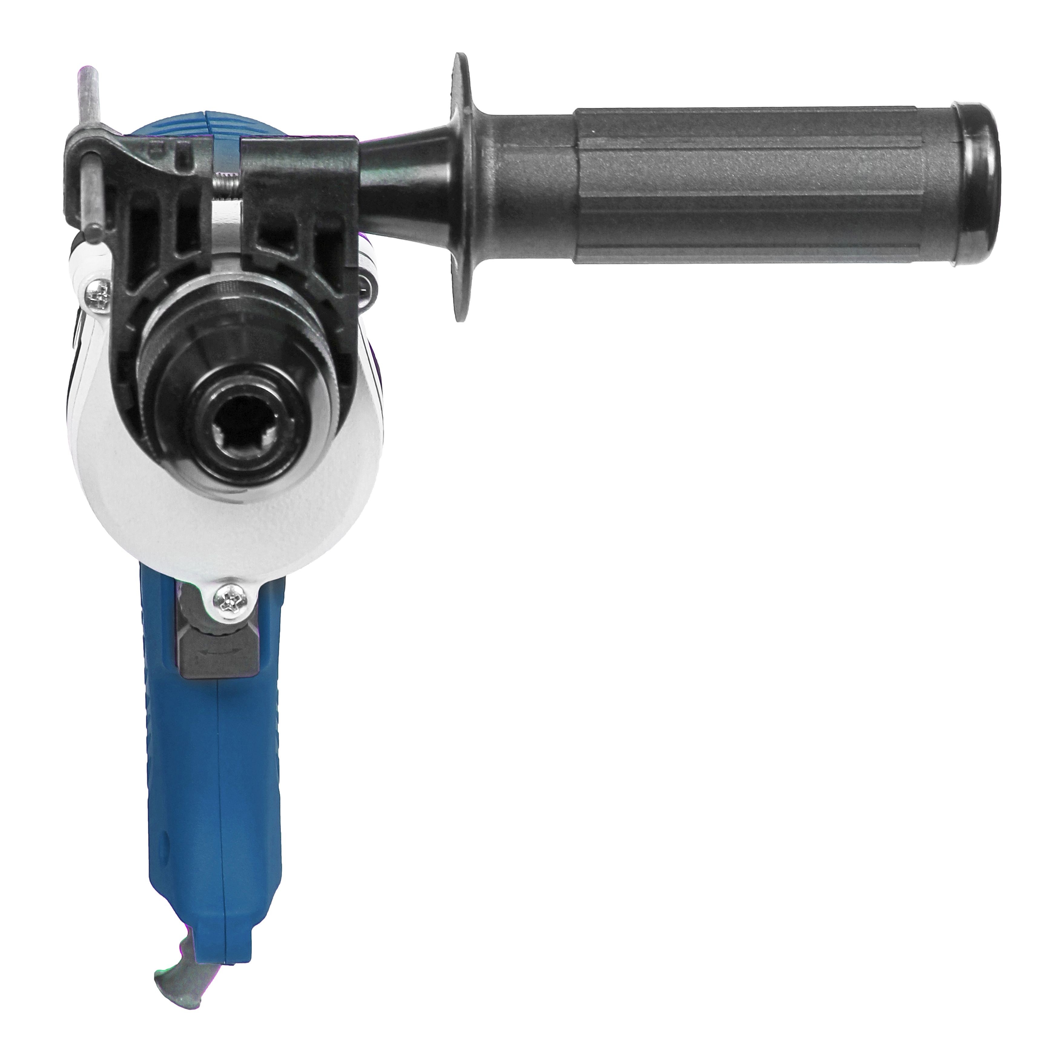 ЗВП, Реверс, регулировка скорости, металлический редуктор, шарнирное крепление шнура, мягкие накладки на корпусе и ручках, компактный корпус, новое надежное крепление вспомогательной рукоятки. В комплекте кейс.