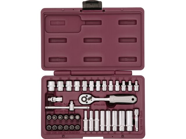 Набор инструмента 1/4"DR, 38 предметов, UTS0038, Thorvik, выполнен из высокопрочной хромованадиевой стали.